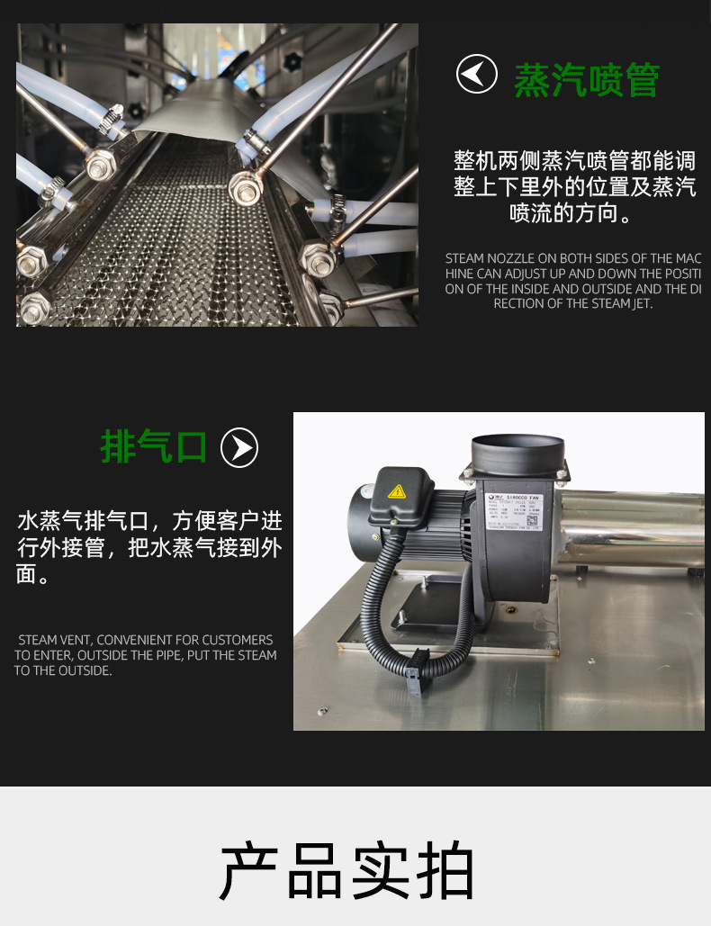 • 收縮室:是蒸汽與產品及包裝膜進行熱交換的場所。收縮室的設計和結構會影響蒸汽的分布均勻性和收縮效果,良好的收縮室設計能夠保證蒸汽充分、均勻地作用于包裝膜,使收縮后的包裝更加美觀、緊致。