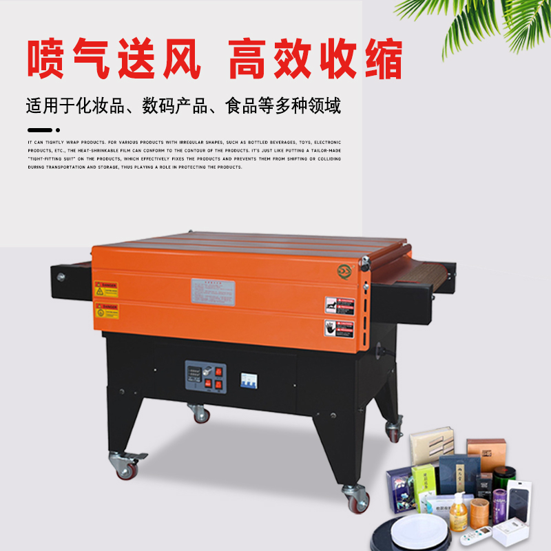 它主要是利用熱空氣循環的原理來工作。機器內部設有加熱裝置,能夠將空氣加熱到一定的溫度。然后通過強力的噴氣系統,將熱空氣均勻地噴射到被包裝物品的表面。當包裝薄膜(通常是熱收縮薄膜)受熱后,會產生收縮,從而緊密地貼合在產品的表面,達到良好的包裝效果。例如,在包裝飲料瓶時,熱收縮膜在熱空氣的作用下,緊緊地裹住瓶子,不僅可以使產品外觀更加整齊美觀,還能起到防塵、防潮等保護作用。