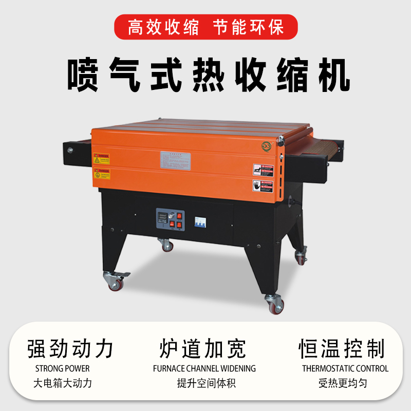 - 適用范圍廣:可以適應多種不同形狀、尺寸和材質的產品包裝。無論是規則形狀的長方體、圓柱體產品,還是一些不規則形狀的物品,只要選擇合適的熱收縮薄膜,都可以利用噴氣式熱收縮機進行包裝。同時,它也能處理不同厚度的薄膜,從較薄的 PVC 薄膜到相對較厚的 POF 薄膜都可以使用。