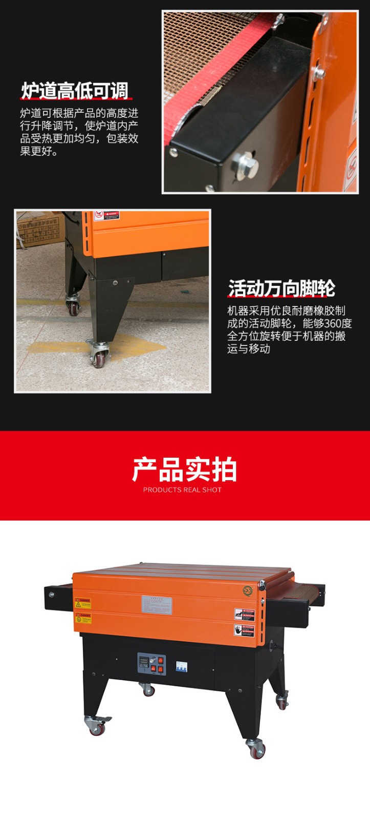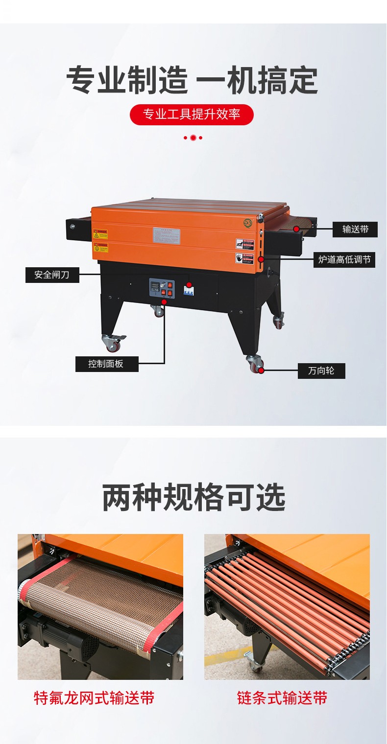 • 能夠?qū)崿F(xiàn)均勻、緊密的包裝效果。熱空氣的均勻噴射確保了薄膜在產(chǎn)品各個部位的收縮程度一致,使得包裝后的產(chǎn)品外觀更加美觀、整潔。而且,緊密貼合的薄膜可以有效地保護(hù)產(chǎn)品免受灰塵、水分等外界因素的侵害。例如,在包裝電子產(chǎn)品時,良好的收縮包裝可以防止靜電吸附灰塵,保護(hù)產(chǎn)品內(nèi)部的電子元件。