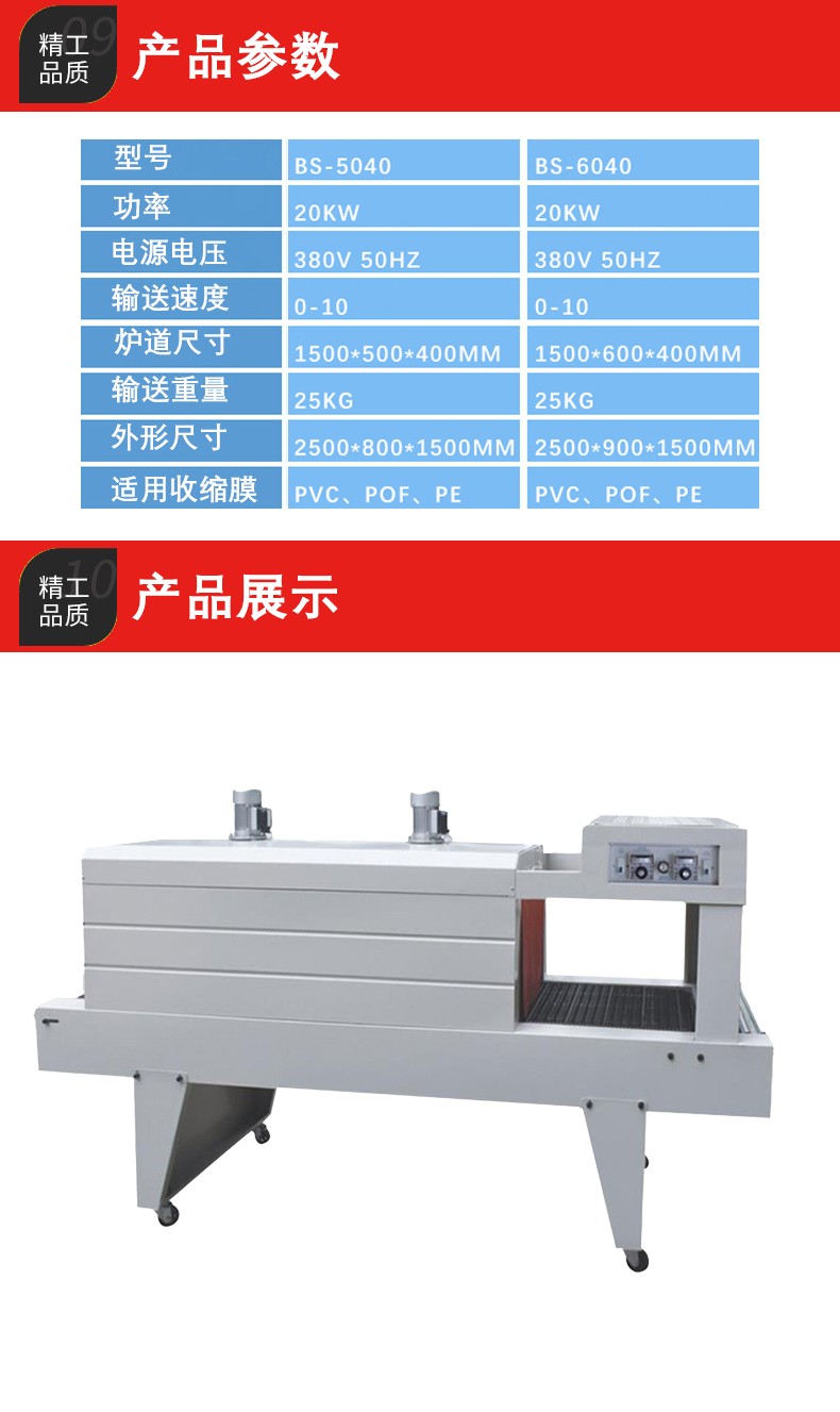 主要包括輸送帶和驅動電機。輸送帶用于承載并輸送被 PE 薄膜包裹的產(chǎn)品通過加熱區(qū)域。驅動電機控制輸送帶的速度,這個速度是可以調(diào)節(jié)的。其重要性在于確保產(chǎn)品在加熱區(qū)域停留足夠的時間,讓 PE 薄膜充分收縮。例如,如果輸送帶速度太快,PE 薄膜可能來不及完全收縮就離開了加熱區(qū)域,導致包裝質(zhì)量不佳;如果速度太慢,又會影響包裝效率。