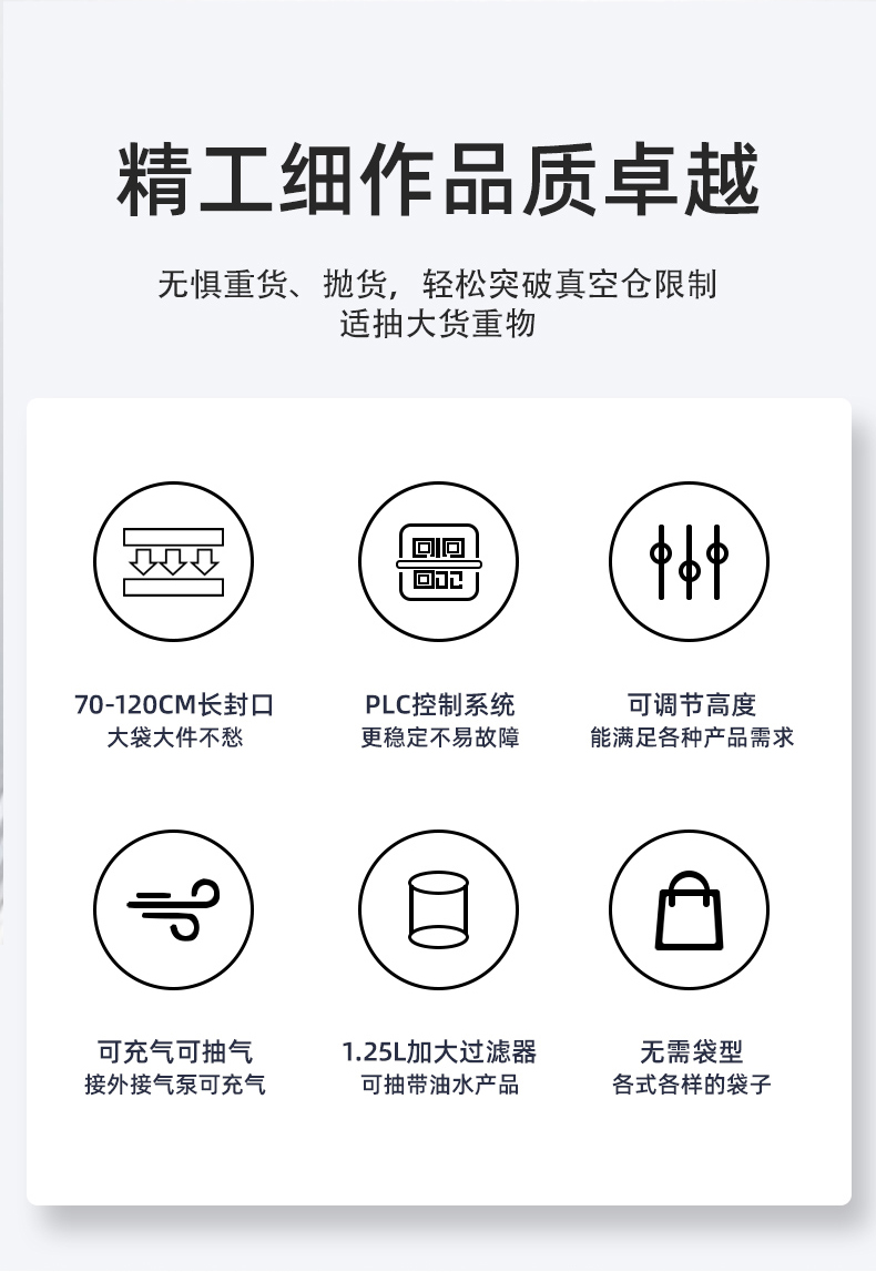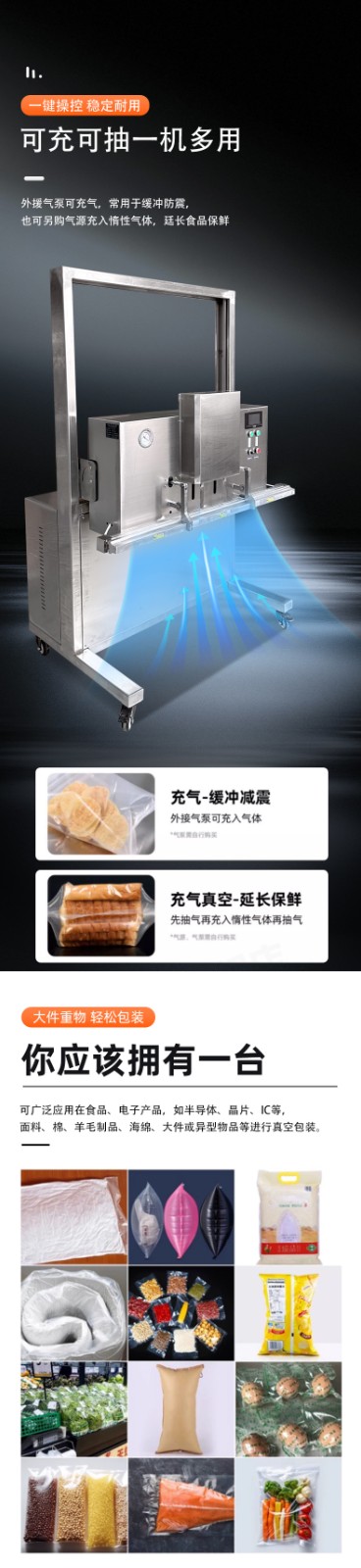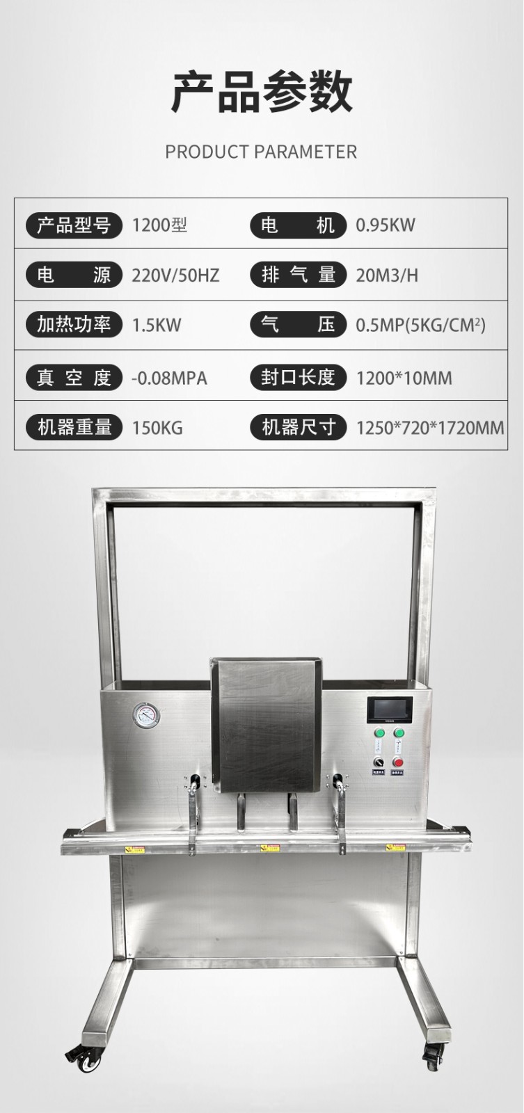 1200 型立式外抽真空包裝機憑借超大封口尺寸(1200mm 長)、外抽式無真空室限制、可兼顧真空 / 充氣包裝的核心優(yōu)勢,適用范圍覆蓋多個行業(yè),能滿足不同類型產(chǎn)品的保鮮、防護(hù)、減容需求,具體可分為以下幾大領(lǐng)域: