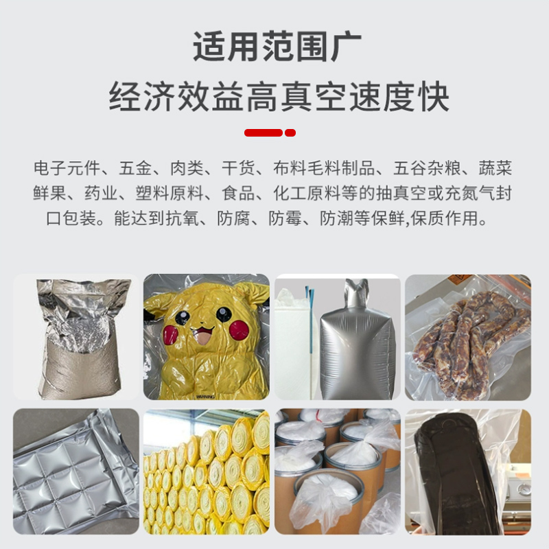 - 包裝效果好:能夠實現高效的抽真空和密封功能,使包裝內的物品處于真空狀態,有效防止物品受潮、受腐蝕氣體及鹽霧侵蝕,延長物品的保質期和使用壽命2。