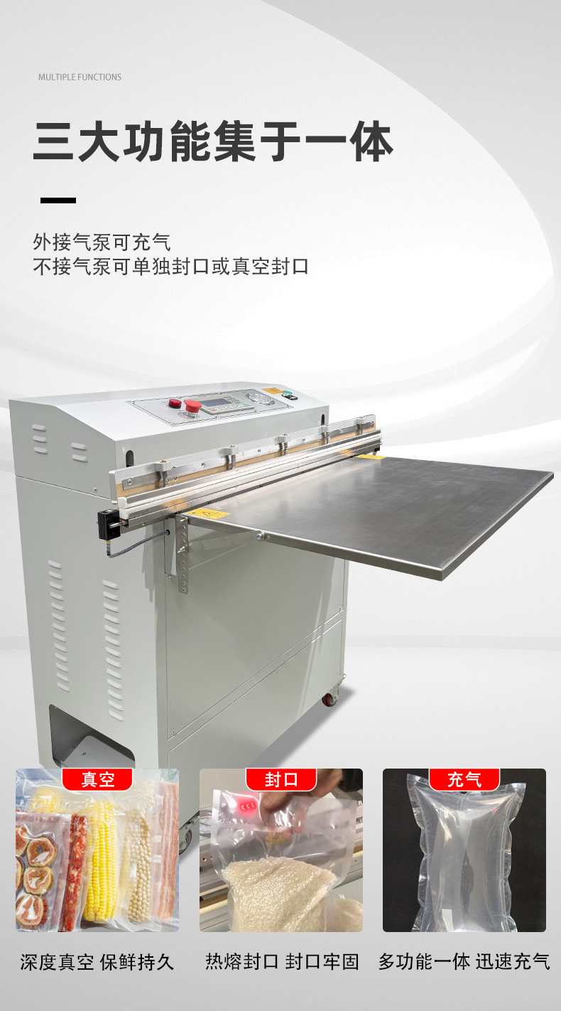 - 適配多場(chǎng)景:支持 PE、PA、鋁箔等多種包裝材料,可切換 “真空封口”“充氣保鮮” 兩種模式,兼顧工業(yè)防銹與食品保鮮需求。