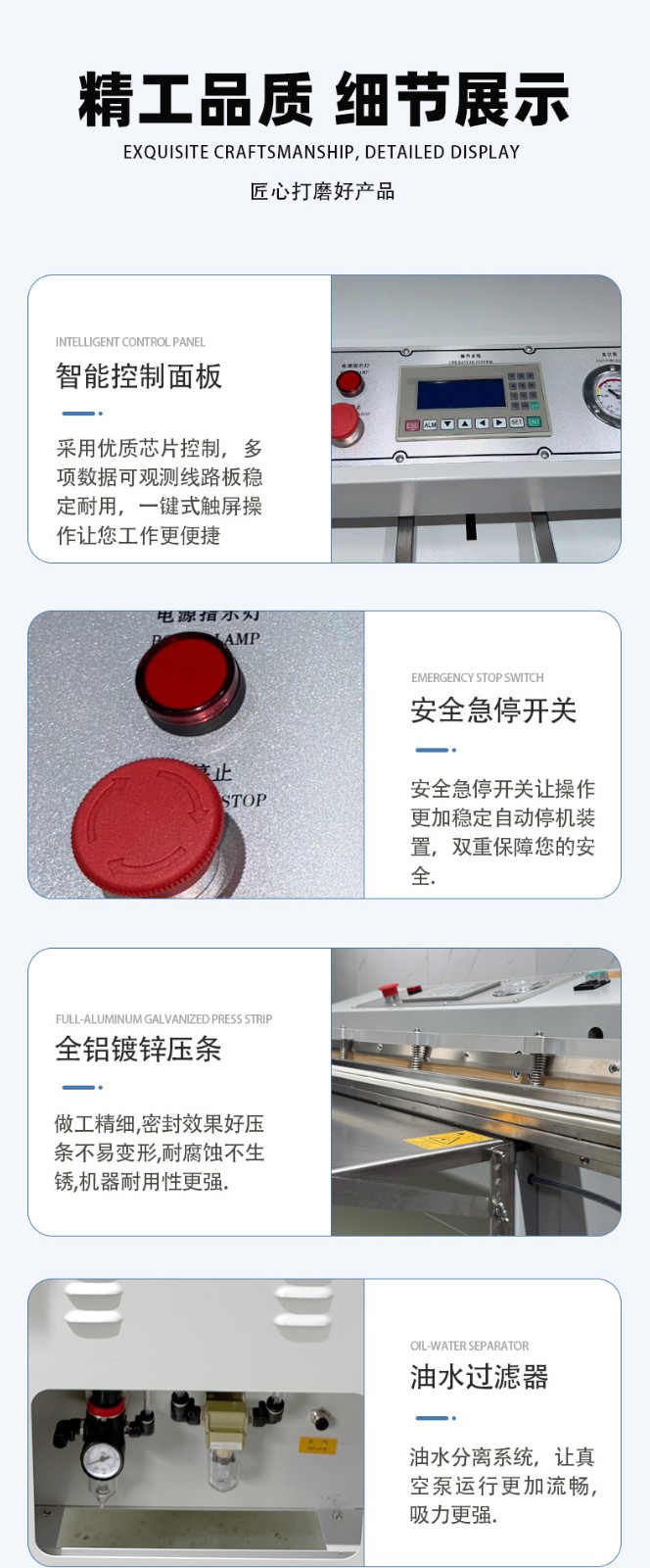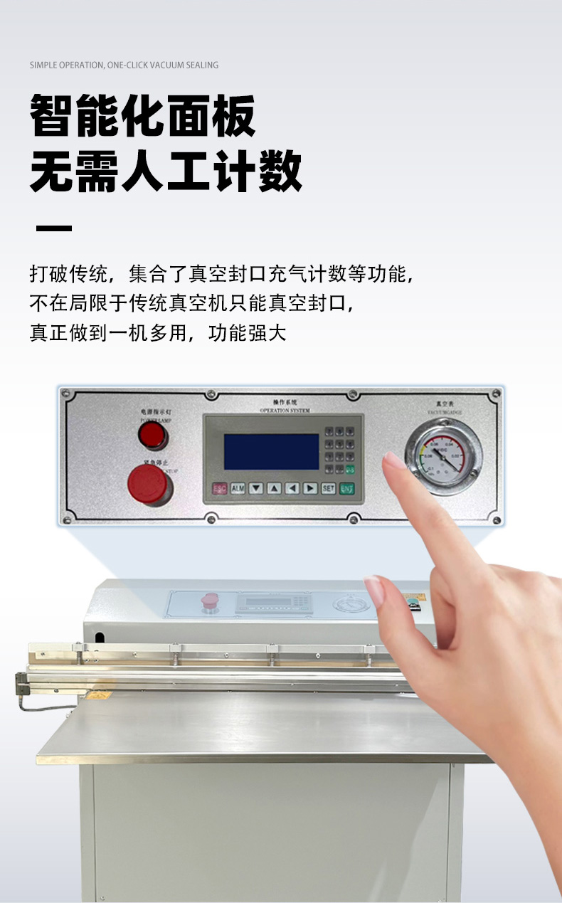 - 操作門檻低:無(wú)需頻繁調(diào)整腔體大小,只需定位袋口即可啟動(dòng),部分機(jī)型配備腳踏開(kāi)關(guān),單人即可高效操作。