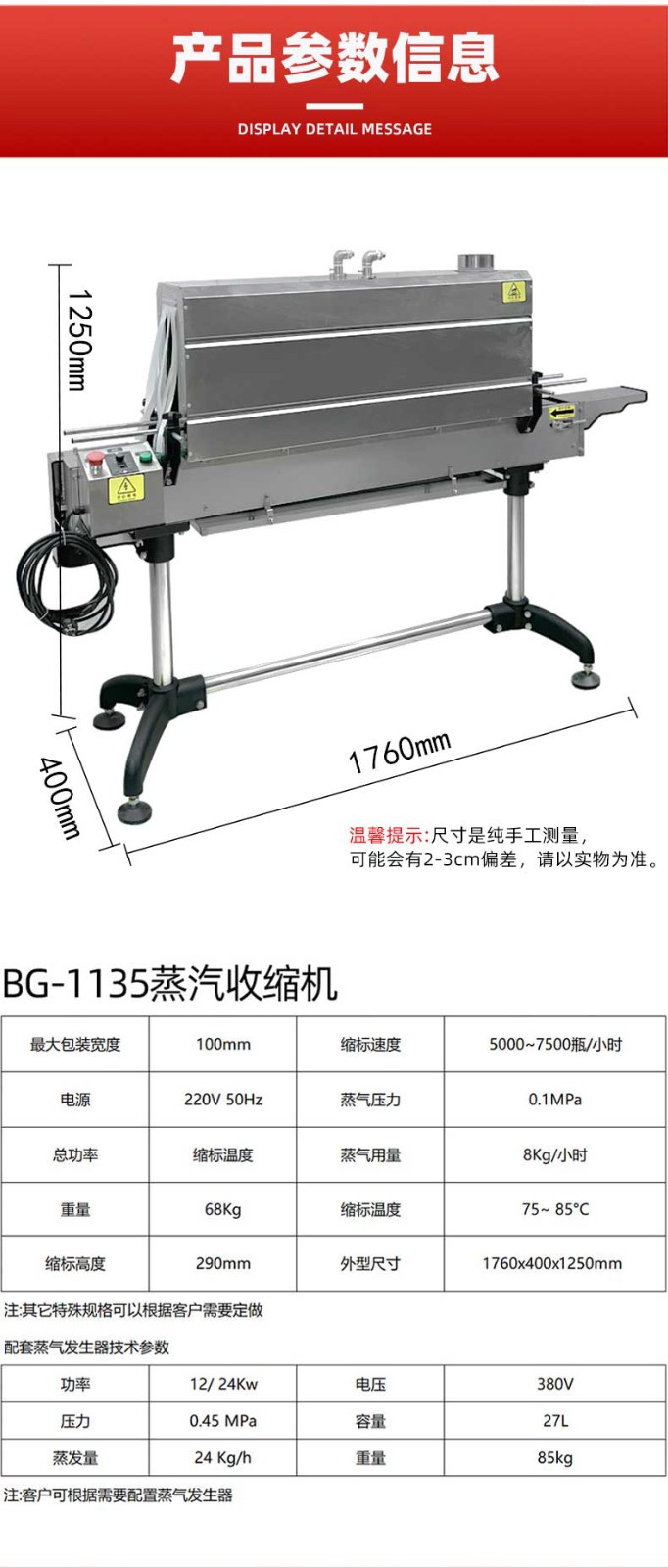 • 高效收縮:能快速產生大量蒸汽,使包裝膜迅速收縮貼合產品,可提高生產效率。