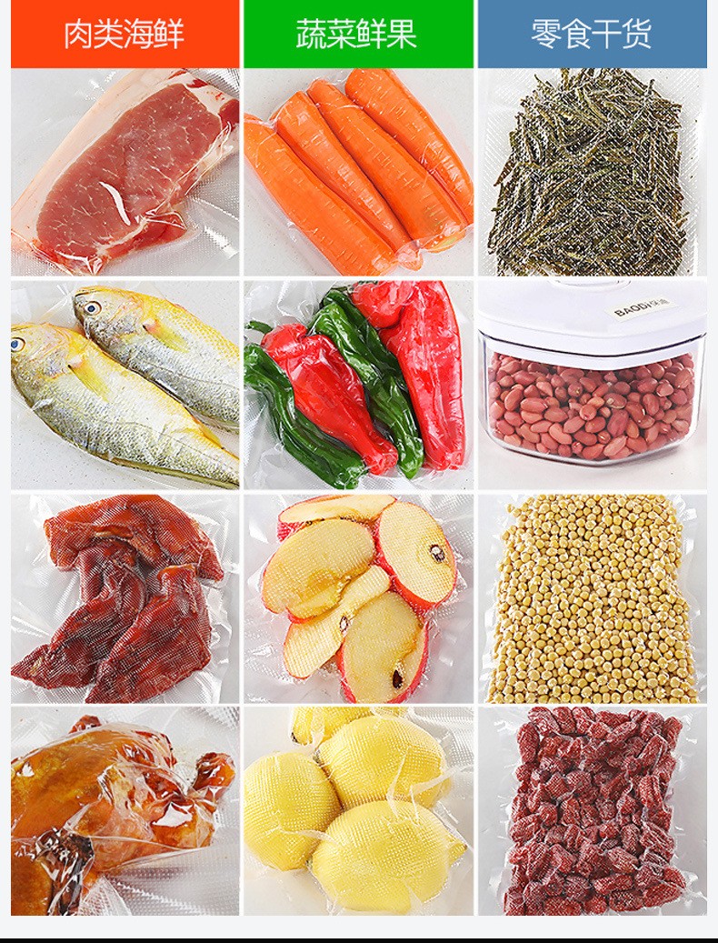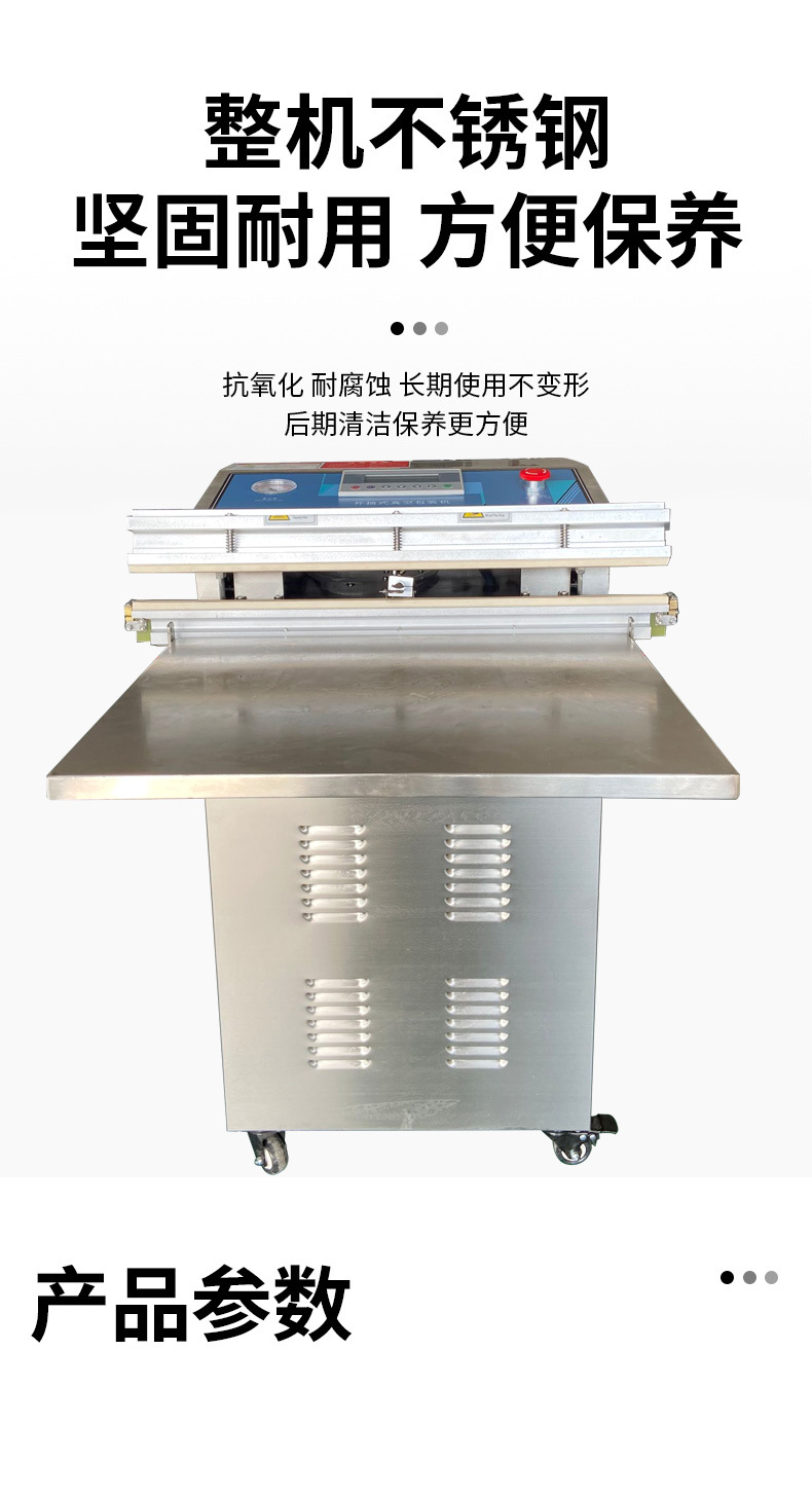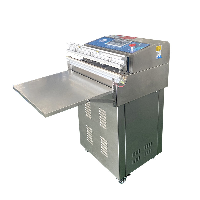 真空包裝機能夠自動抽出包裝袋內的空氣,達到預定真空度后完成封口工序。亦可再充入氮氣或其它混合氣體,然后完成封口工序。真空包裝機常被用于食品行業,因為經過真空包裝以后,食品能夠抗氧化,從而達到長期保存的目的。