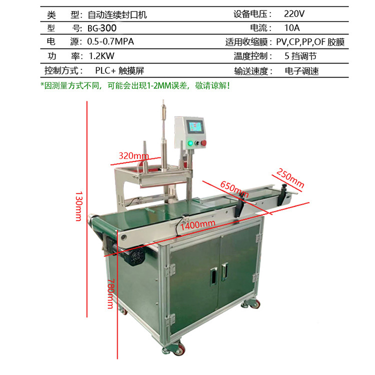 其特點(diǎn)包括封口速度快、封口質(zhì)量穩(wěn)定、操作簡便等。不同型號的連續(xù)式封口機(jī)在封口寬度、封口溫度控制、適用包裝材料等方面可能會(huì)有所差異。